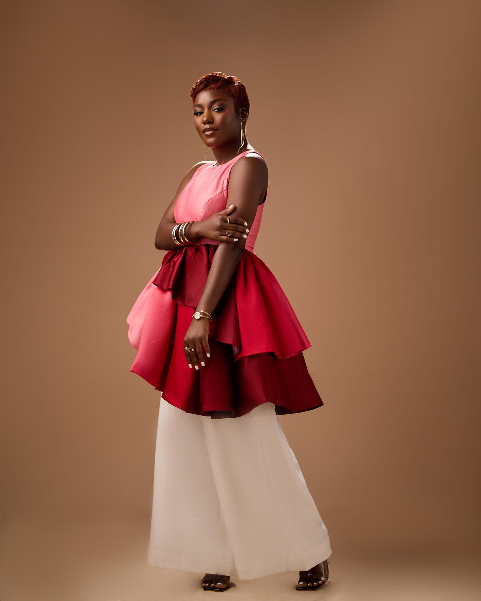 From wide-leg silhouettes to ivory-gold celebrations, every garment speaks without shouting. These are garments for intimacy, influence, and stillness. They move like prophecy whispered, not announced.