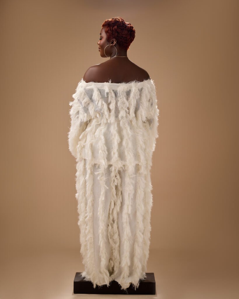 From wide-leg silhouettes to ivory-gold celebrations, every garment speaks without shouting. These are garments for intimacy, influence, and stillness. They move like prophecy whispered, not announced.